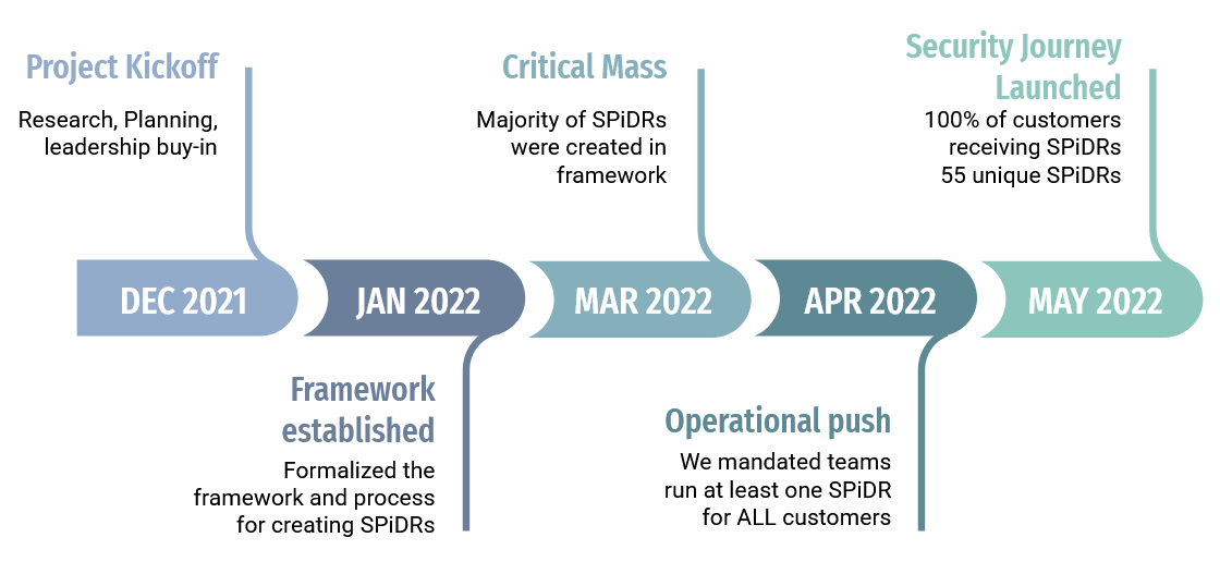 Maturity-based content: Different SPiDRs for different customer archetypes. Enterprise vs. SMB, regulated vs. unregulated, each got appropriate depth and complexity